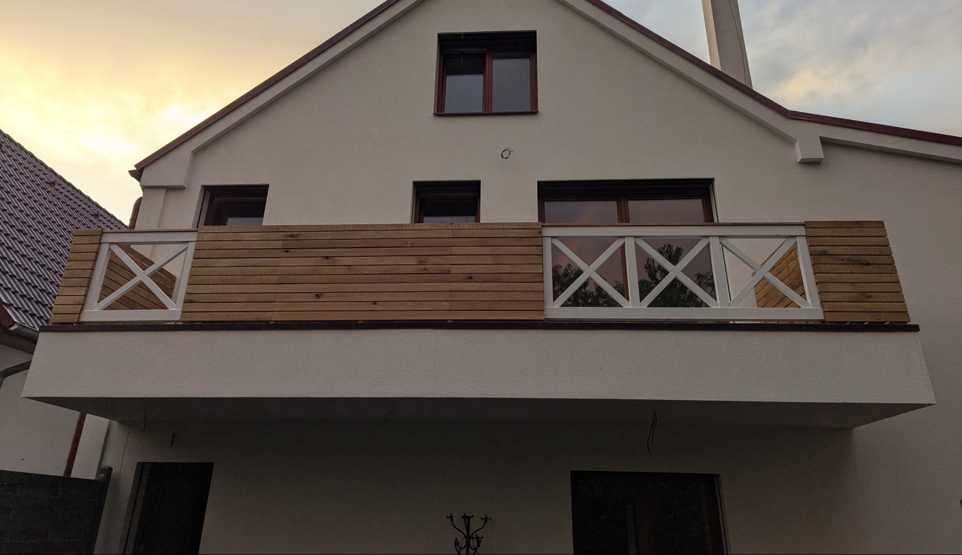 Poté jsem začal s výrobou. Za pár zábradlíky přijel namontovat. Trvalo to 5 dní, včetně nátěrů OSMO teakovým olejem.